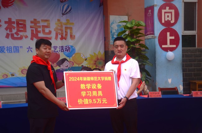 为持续推进学校党委教育帮扶工作,切实提高帮扶工作实效性,在“六一”儿童节到来之际,学校驻莎车县前方党工委向亚喀艾日克乡中心小学捐赠总价值9.5万元教学设备、学习用具等,并对亚喀艾日克乡中心小学500名表现优异的学生赠送学习大礼包进行表彰,为孩子们送上了节日的祝福和浓浓的关爱。