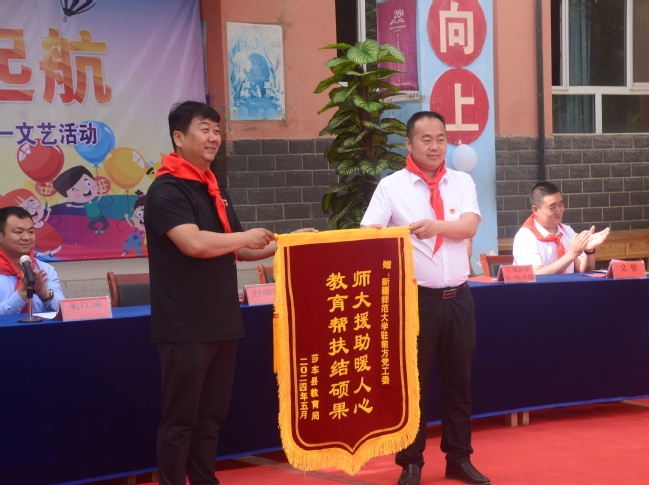 莎车县教育局党委书记常振平向365官网赠送锦旗